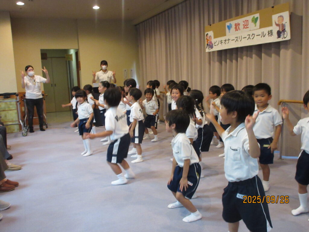 年中児が、特別養護老人施設『喜寿苑』に行き、おじいちゃんおばあちゃんにお歌を歌ったり、ダンスを披露したりしました。